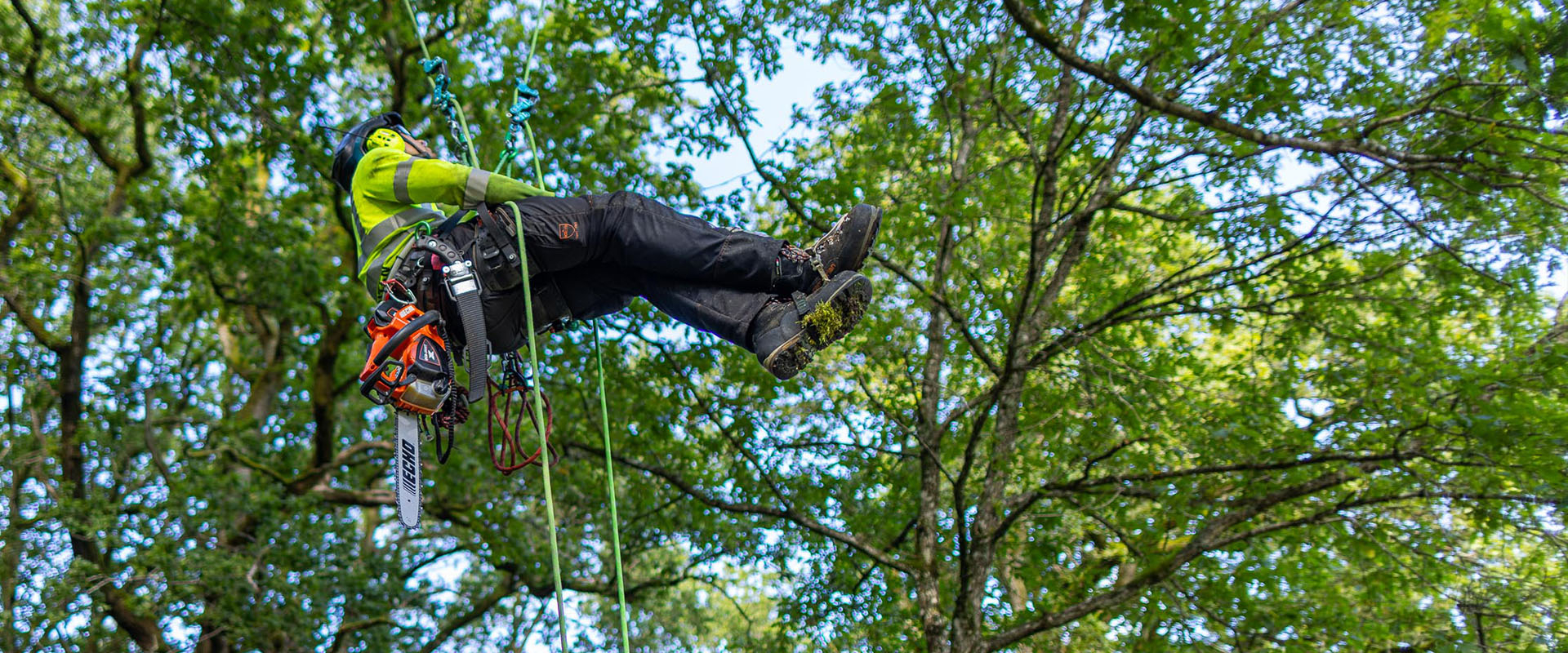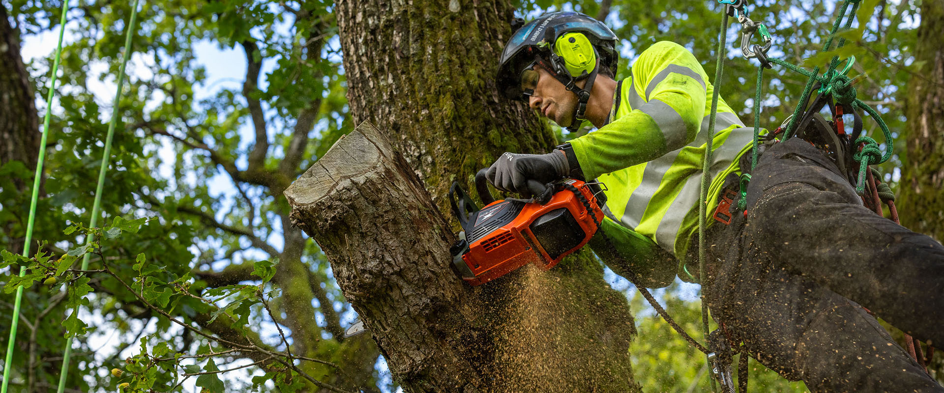 Högpresterande, lättanvänd kedjesåg med topphandtag, utformad för seriöst arboristarbete.